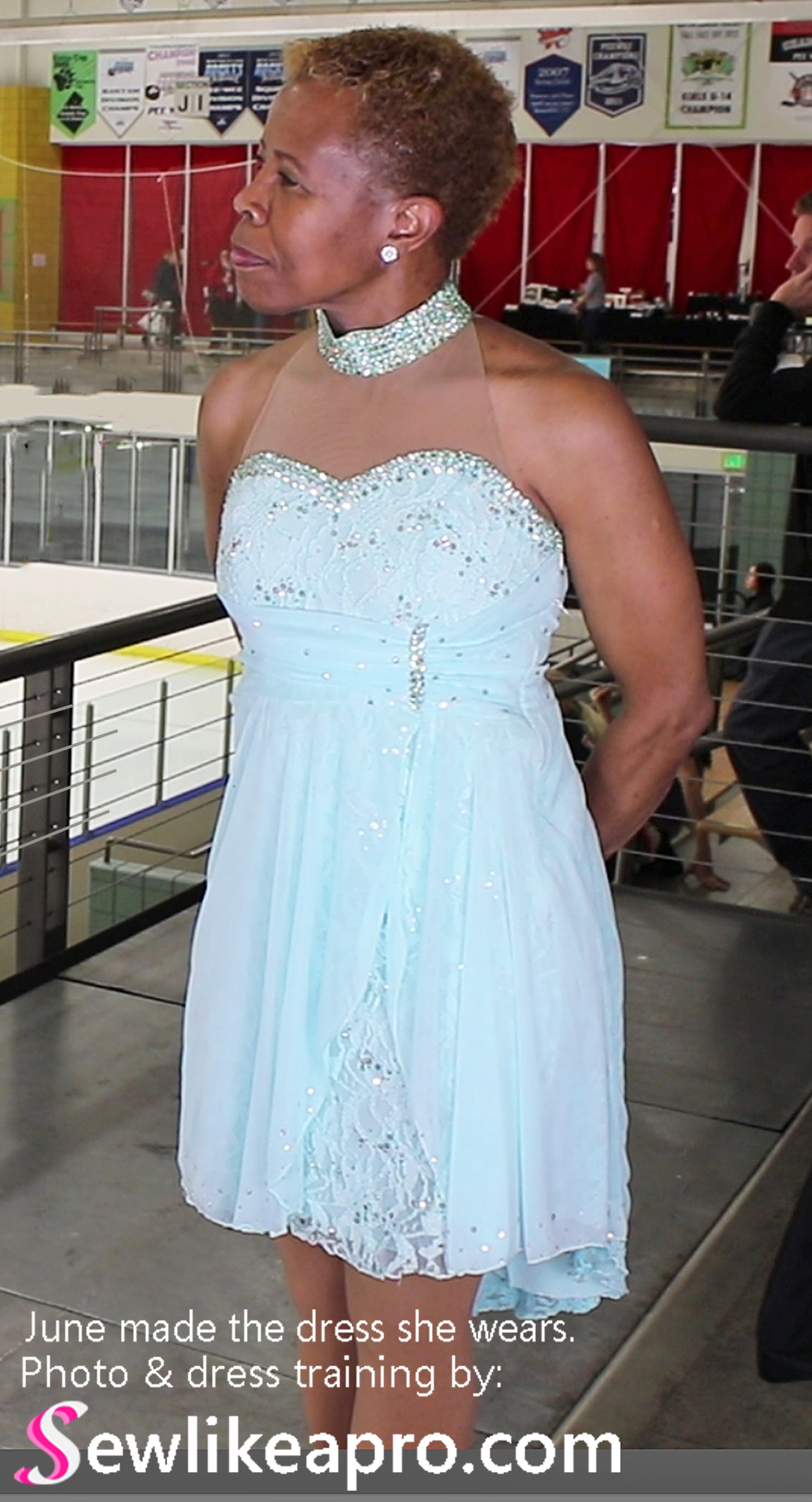 Check out June's Empire waist ice dance dress for more information about this lovely style of dress. June designed and made this pale blue dress for herself, and wore it at the 2019 U.S. Adult Nationals Figure Skating Championships.