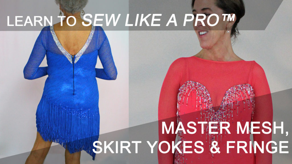 Fringe is popular in both Latin dancing and ice skating because it creates the illusion of a lot of movement. It goes with almost anything. You can even make a fringe skirt for a stretch velvet ballgown!