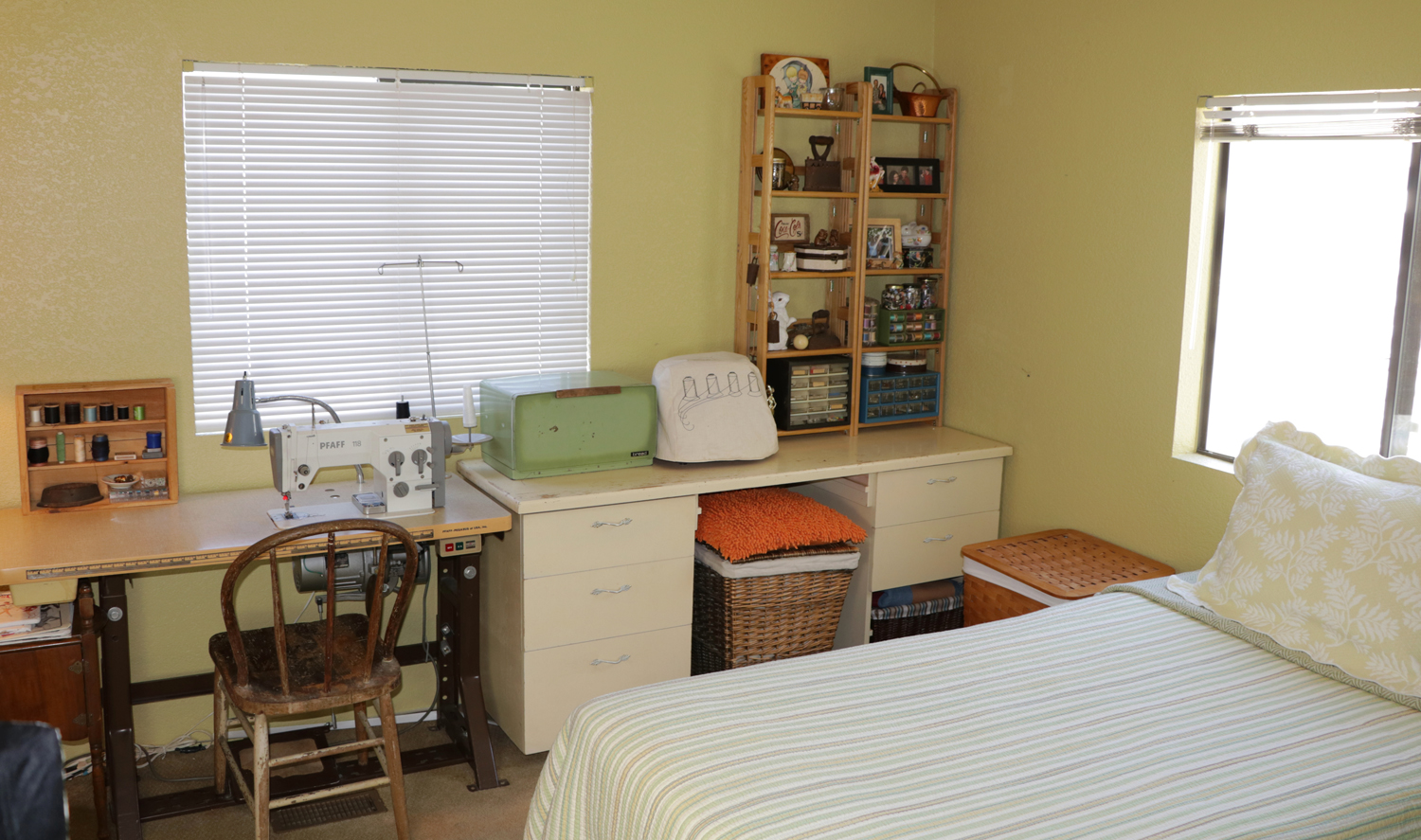 How does Rhonda, the keeper of this space, pull it all together so the room is functional for sewing, tidy for guests and maintains her personal decorating tastes?