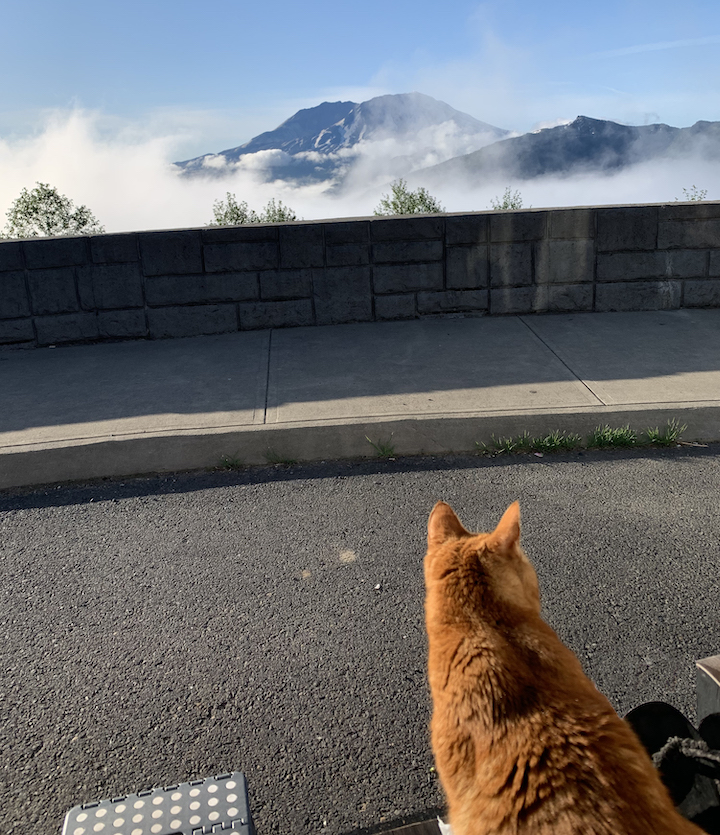 The image on the right is more interesting than a burger joint. It is Mount Saint Helens in Washington. Sophie and I went to slept and awoke in this very spot. It was only the two of us watching sunset and sunrise at this glorious volcanic mountain.