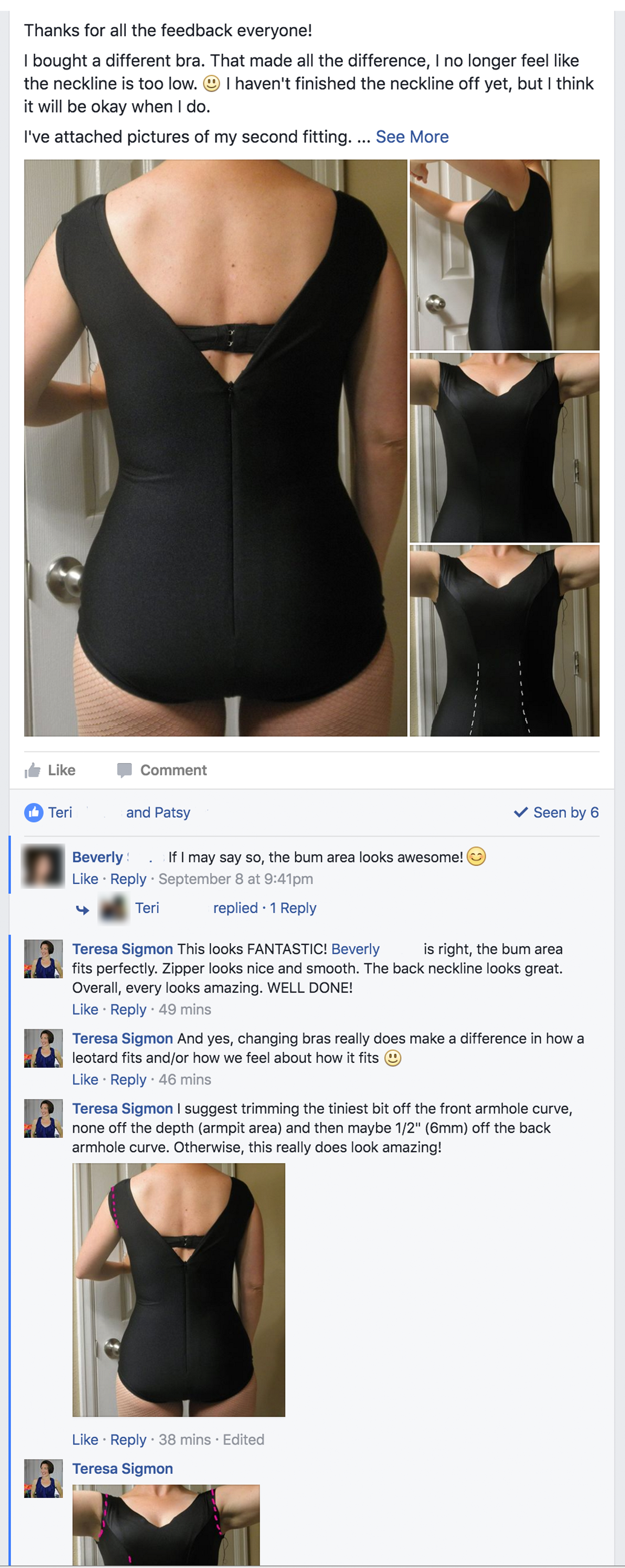 Below are just a few of their works-in-progress that I pulled off our private Facebook group page. Be sure to read all the captions: you’ll get some great sewing tips and you’ll see how smart and supportive this group of students are.