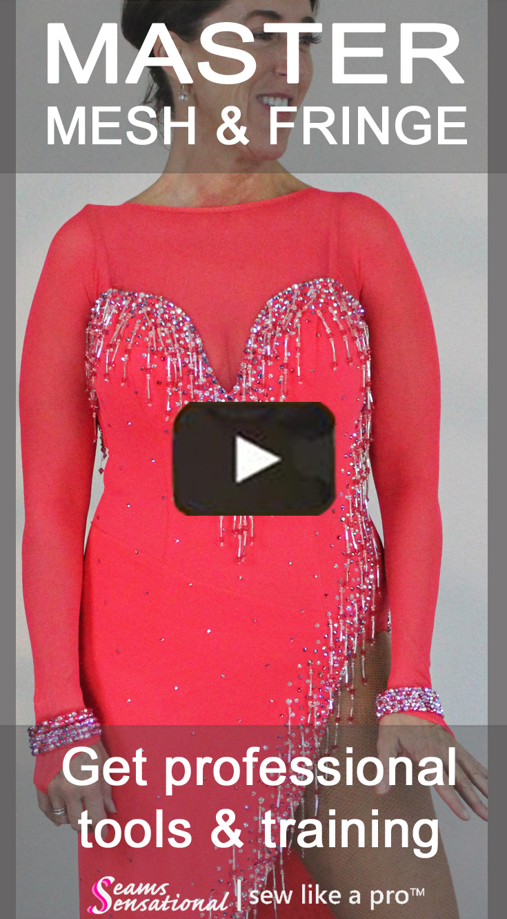 Get the training you need to easily create accent cut-aways and sew mesh, skirt yokes, fringe for Ballroom, Latin, Country and skate dresses.