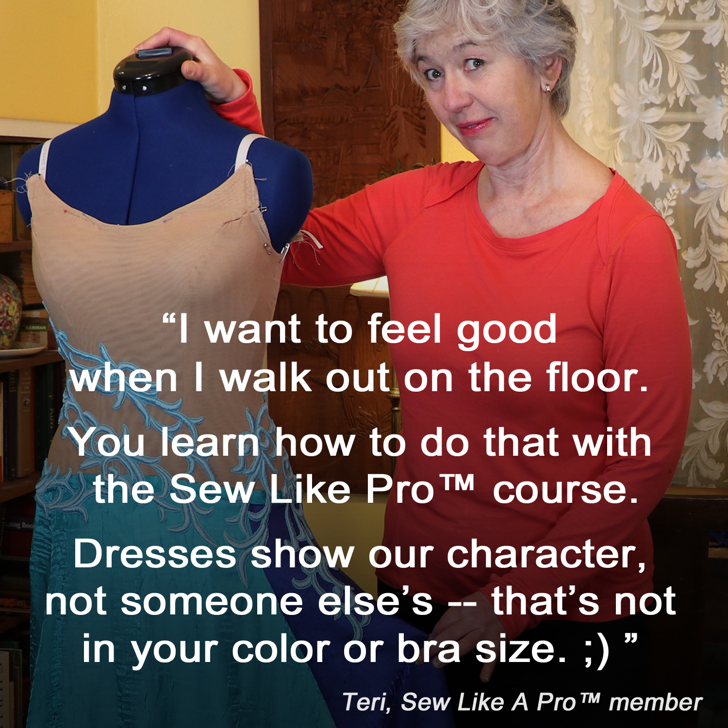 Before enrolling in the Sew Like A Pro™ courses, Teri was a quilter and had never worked with stretch fabric or attempted making a dance dress!
