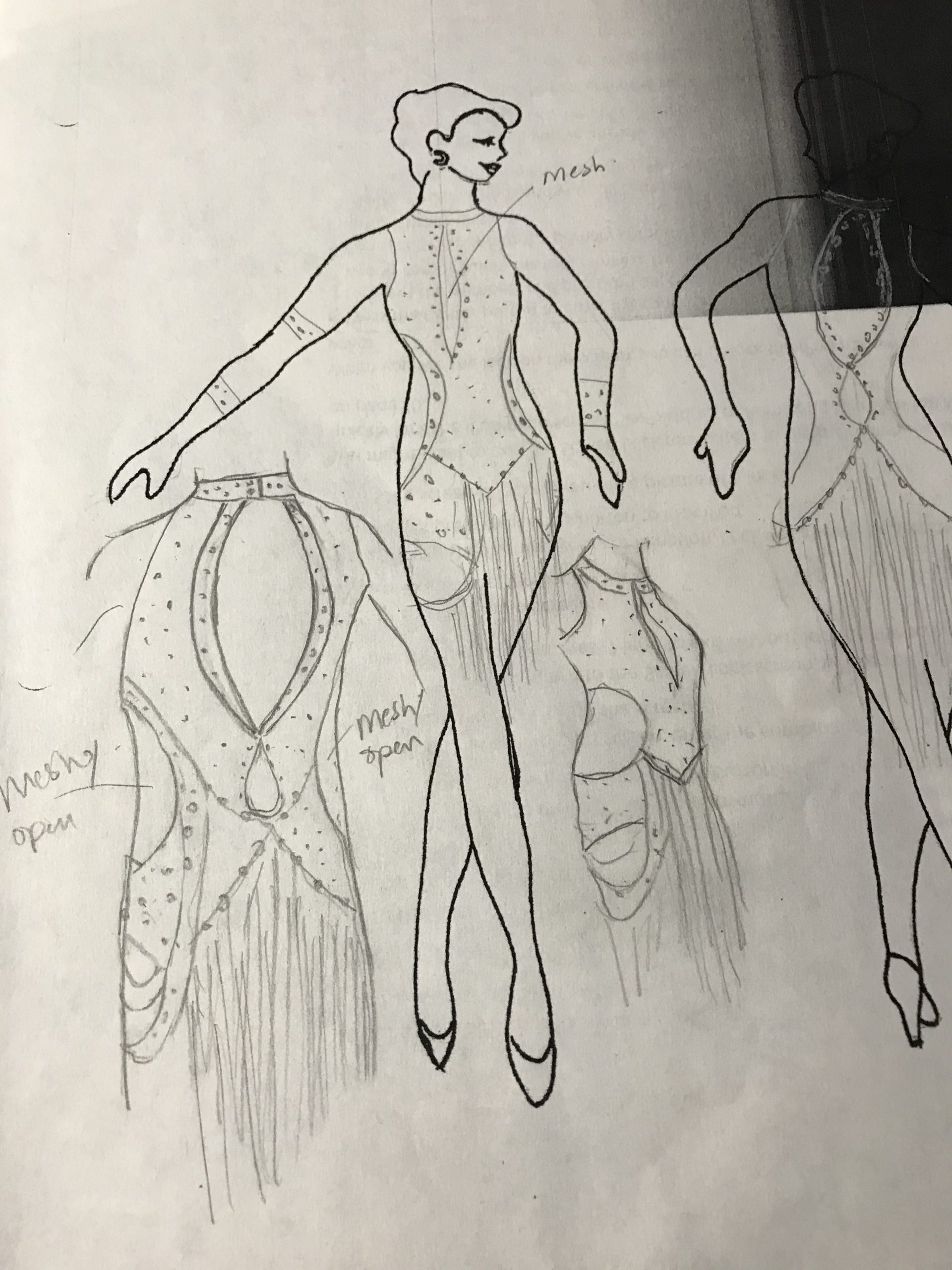 For a "basic" design in which the skirt attaches directly to the leotard, you will make a single layer velvet leotard (unless the velvet is super lightweight, you probably do not need to line it with lycra since you are very lean. However, you can line the velvet leotard if you wish.)  Do not line the sleeves; you will be too hot.  NOTE: Skaters may want to line both the leo and sleeves if you wish to stay warm when not performing.