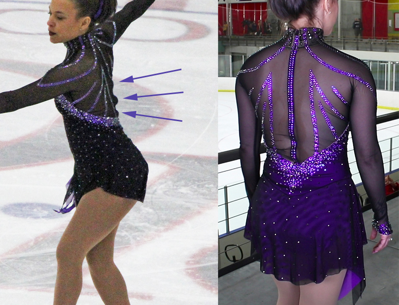I’ve put zippers in Dancesport ballgowns in unique places to make the viewer wonder how the woman got into the dress. This is first time I’ve seen a skate dress with a diagonal zipper like this. Love it!